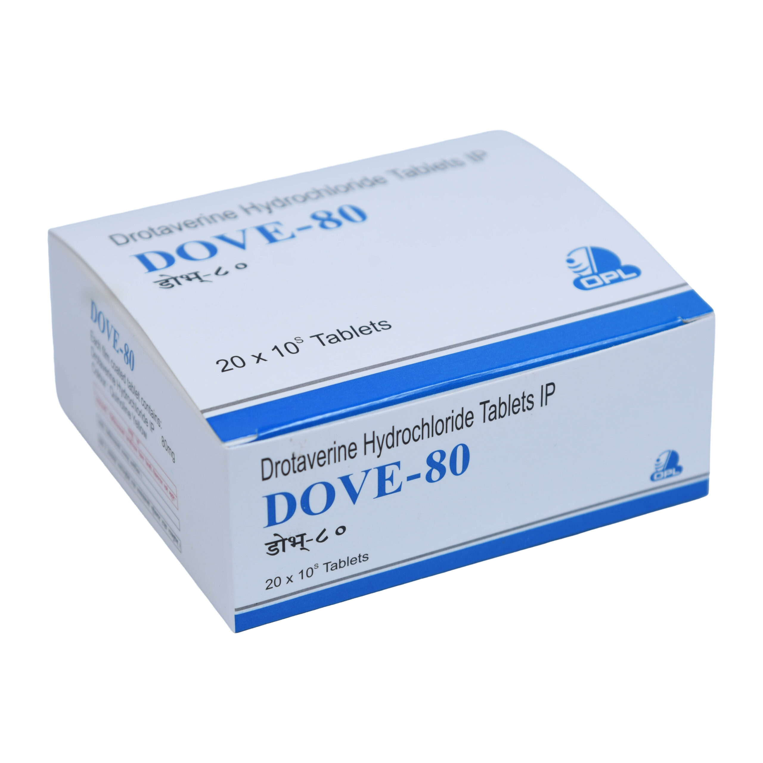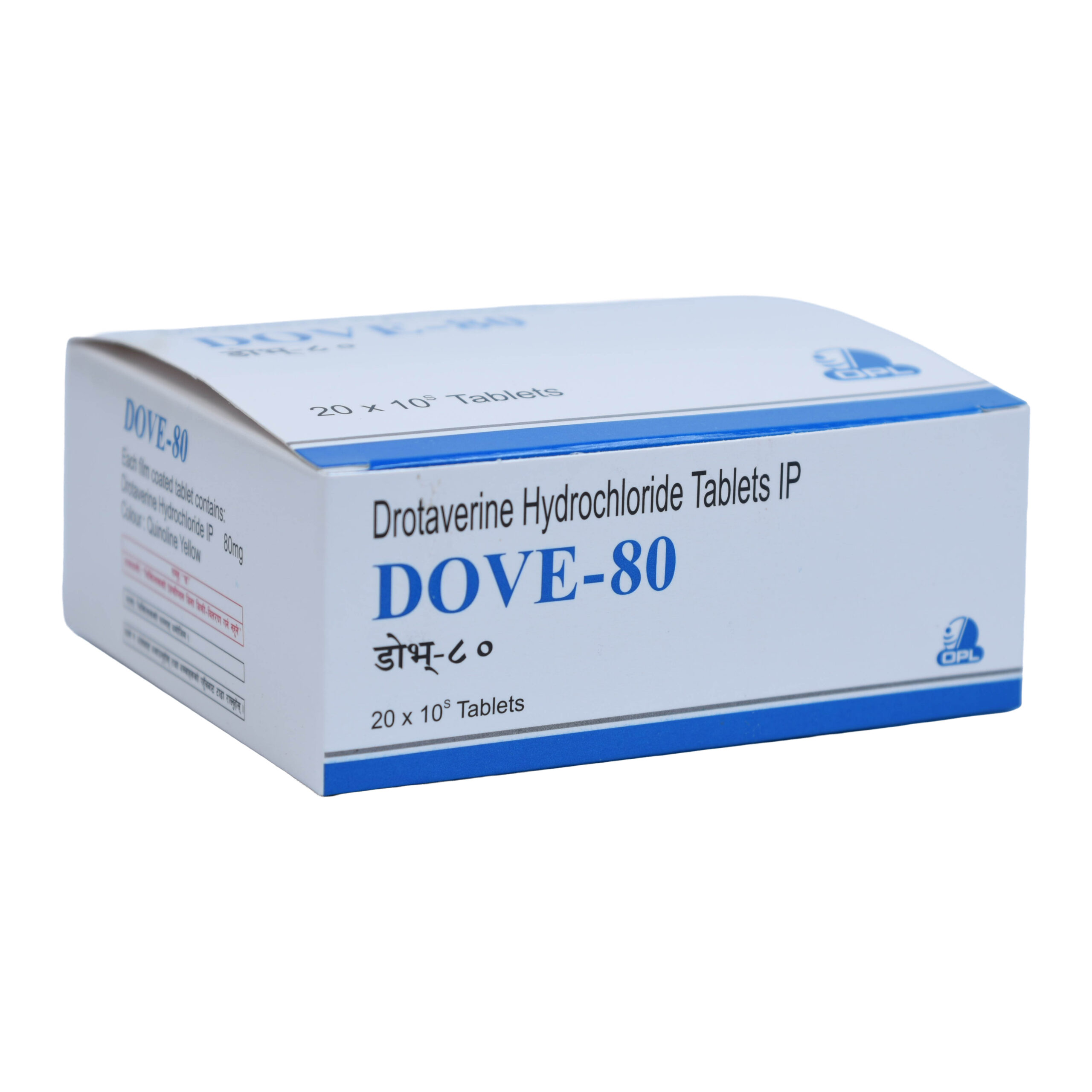 Each film coated tablet contains Drotaverine HCl 80mg.