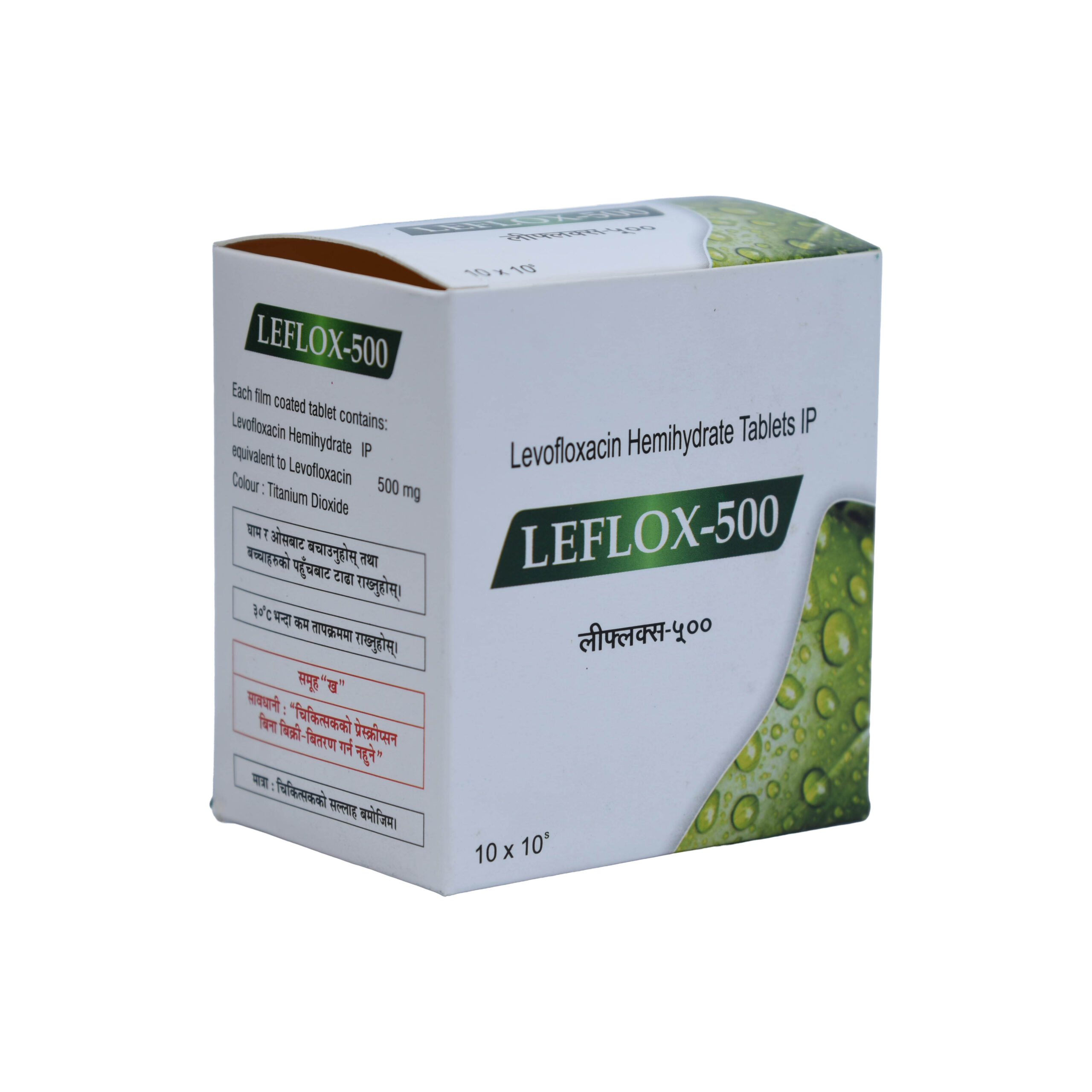 Each film coated tablet contains Levofloxacin Hemihydrate IP equivalent to Levofloxacin 500 mg.
